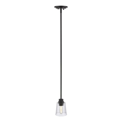 The Bohin collection combines clear seeded glass shades with contemporary styled fixtures. Finishes include matte black or brushed nickel.