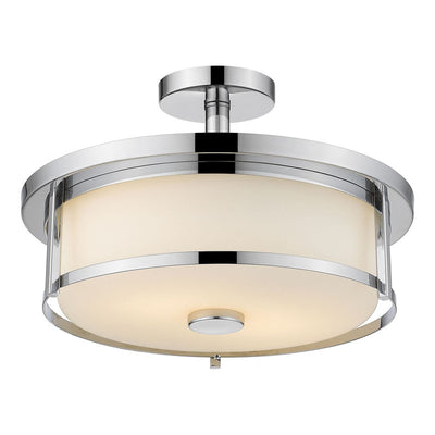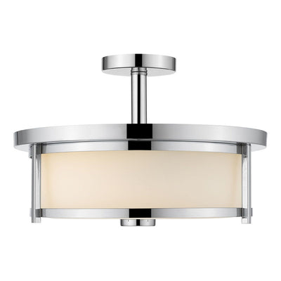 With a touch of charming mid-century modern attitude, this three-light semi-flush mount ceiling light is a solid choice for a contemporary space. Enjoy the perfect blend of radiant and warm with a stunning chrome finish steel frame and a matte opal glass shade.