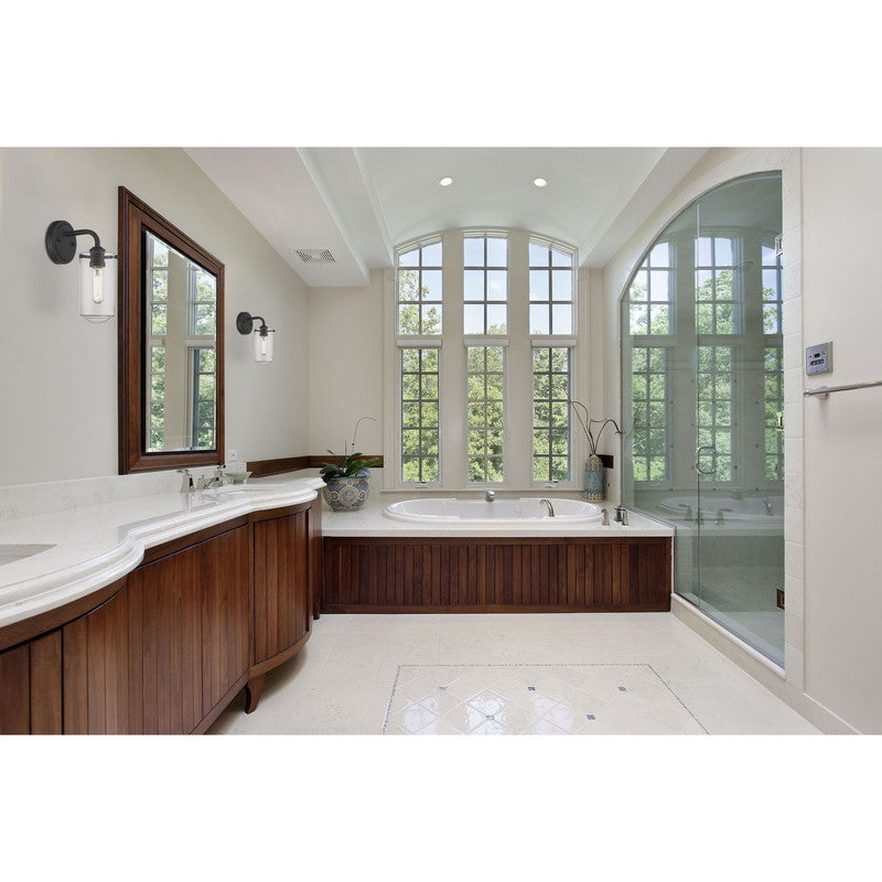 Gleam and radiance show how accent lighting can work to your advantage. Place this brushed nickel and glass wall sconce in a bath or living area to offer spot lighting and continue an urban industrial decor theme.
