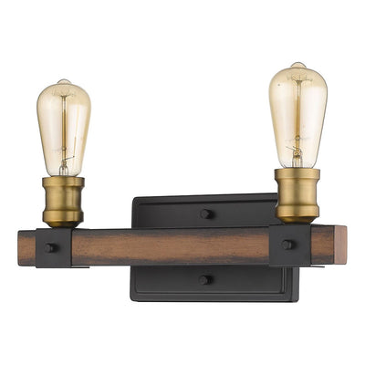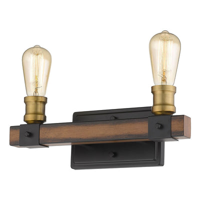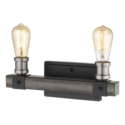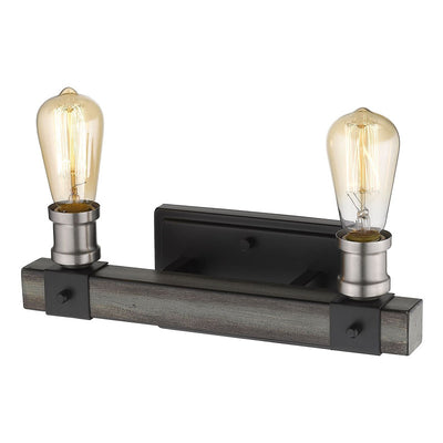 Radiate with modern industrial charm from this two-light wall sconce. Constructed of faux barnwood, the sleek backplate features a deep hue and is adorned with ashen accents.