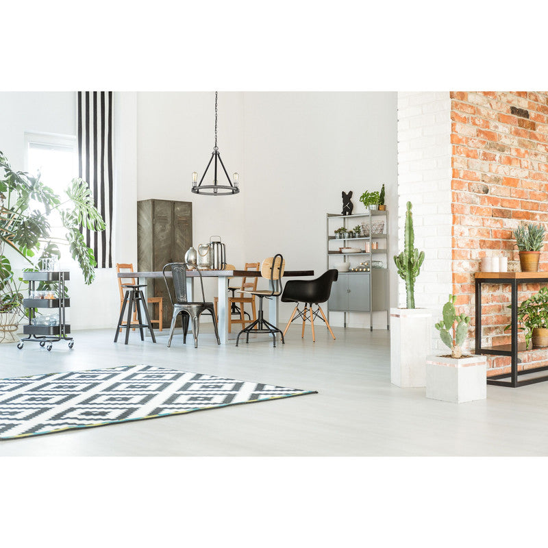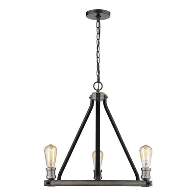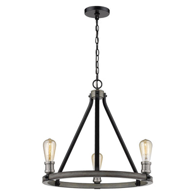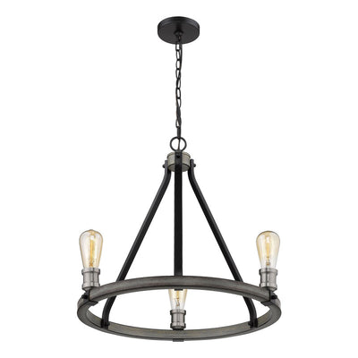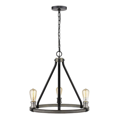 Open and airy, this three-light faux barnwood chandelier is the epitome of modern design. Intermingle the romance of exposed lightbulbs and the distressed industrial feel of the ashen finish.
