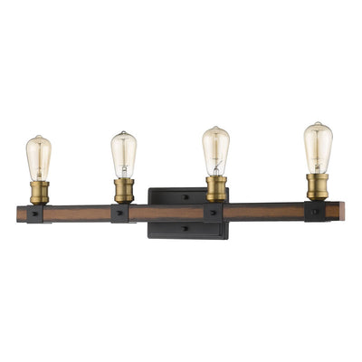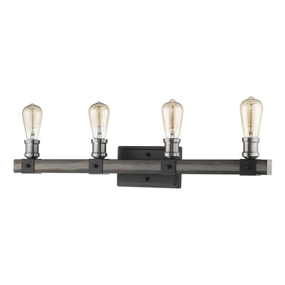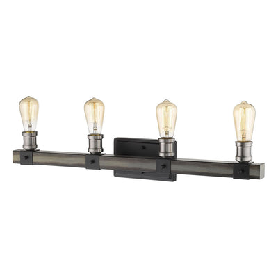Designed to impress, this four-light wall sconce features a stylish faux barnwood frame. Exposed lightbulbs radiate against the distressed industrialism of the ashen hue on the clean silhouette.
