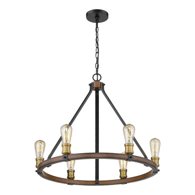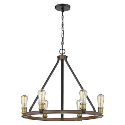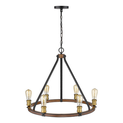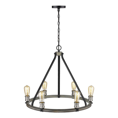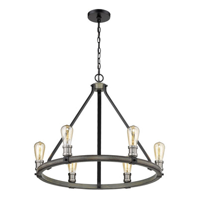 The ring of exposed lightbulbs from this six-light faux barnwood chandelier is perfect for an entryway or large dining room. Celebrate modern industrialism with the distressed ashen finish.