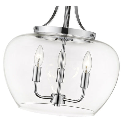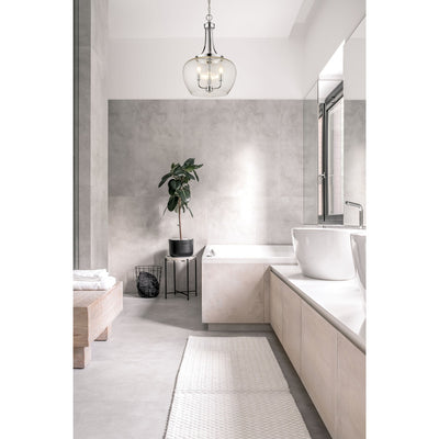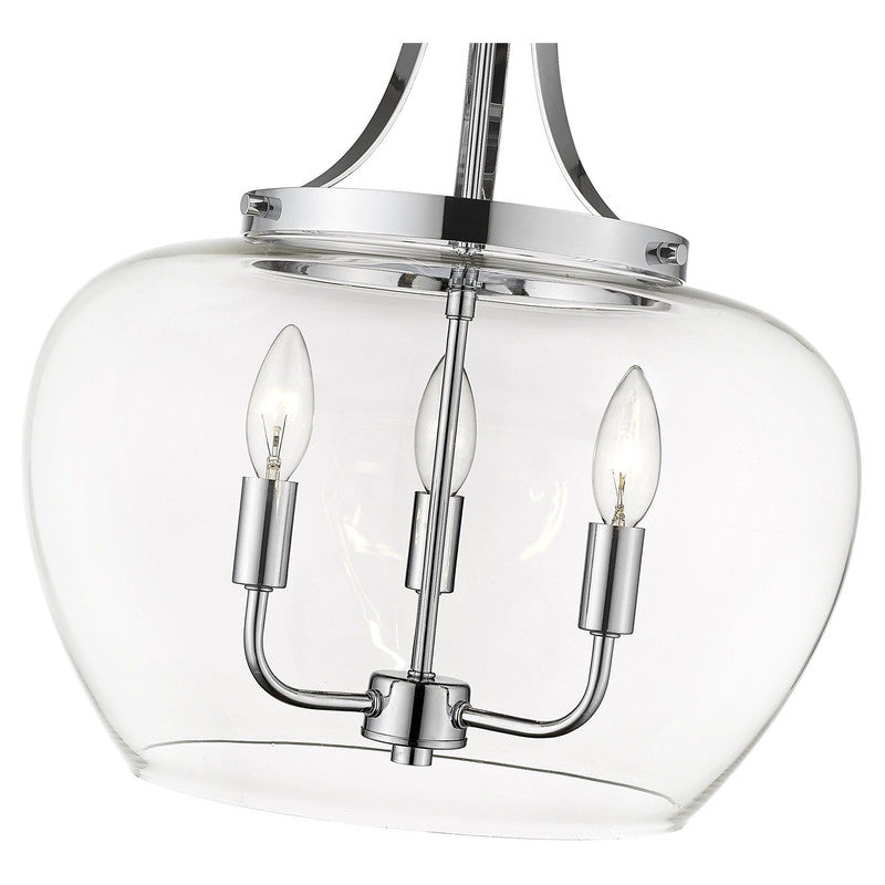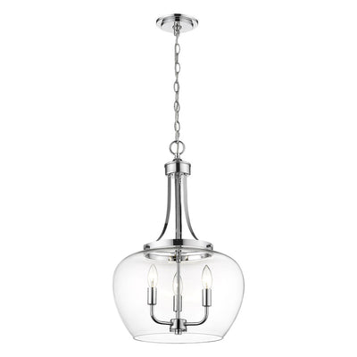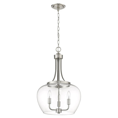 Contemporary elegance makes a difference in this glam steel and glass three-light pendant light, a solid choice for an ultra-modern, custom kitchen, bedroom, or living area. Choose this exquisite pendant from the Joliet collection, admiring its Bordeaux clear glass shade that embellishes an artisanal brushed nickel finish steel mount, chain, and round canopy, creating a low-key yet high-class effect.