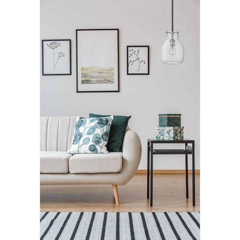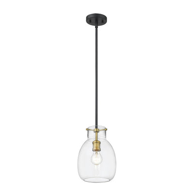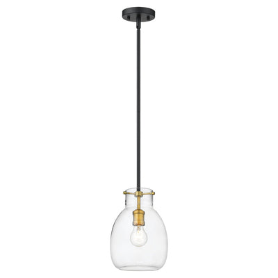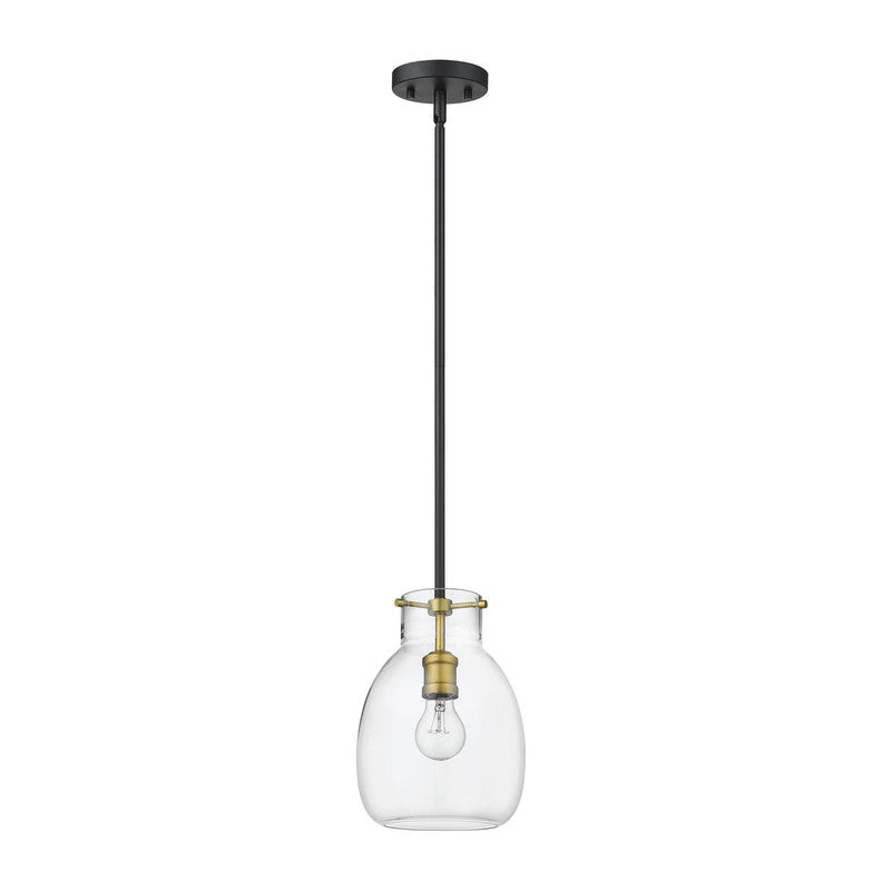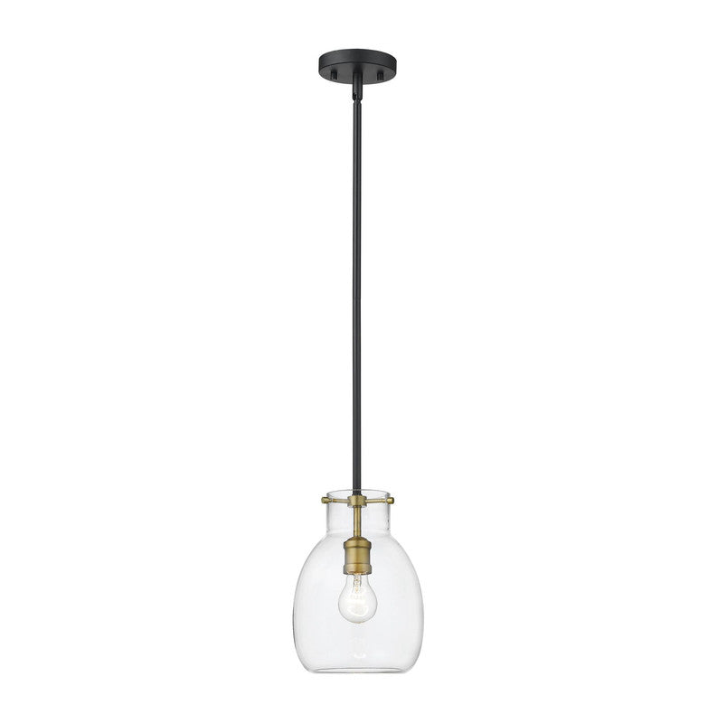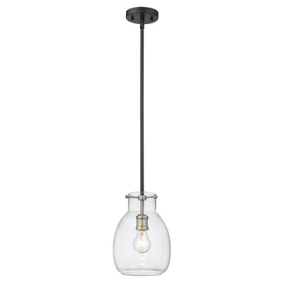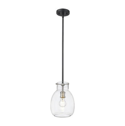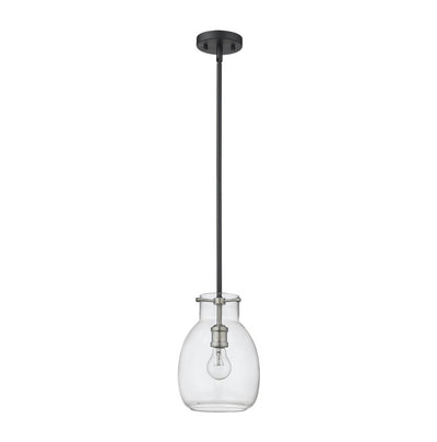 A sleek metal frame in a matte black finish blends elegantly with brushed nickel accents to give this single-light mini pendant a chic, modern look. Its clear glass shade casts a brilliant glow that beautifully illuminates any room.