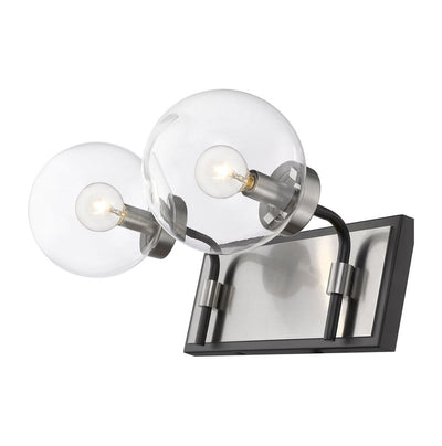 Upgrade the ambiance of your home with this clean, crisp two-light vanity. It's crafted with a matte black and brushed nickel finish and clear glass shades that deliver plenty of radiance. It's ideal for a bathroom, powder room, or bedroom with its mix of modern glam and edginess.