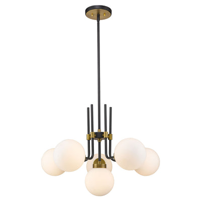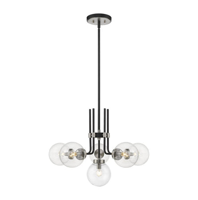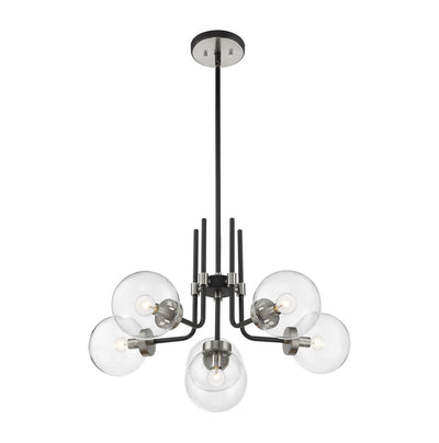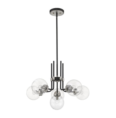 This clean, crisp six-light chandelier adds a magnificent aura to your home. It's fashioned with a matte black and brushed nickel finish and clear glass shades for the brilliant radiance you're looking for. This beauty will uplift any space in the home, whether it's the dining room, foyer, hallway, or kitchen.