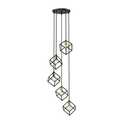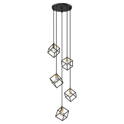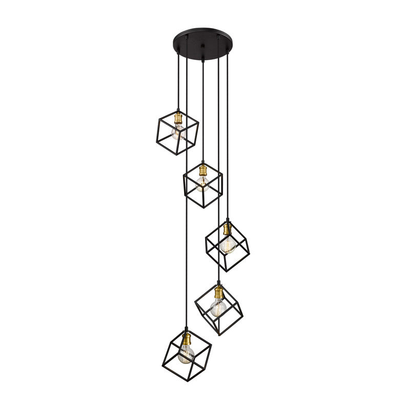 A sense of movement and energy are conveyed in the design of this two-tone five-light pendant for your home. It's fashioned in a bronze and olde brass finish with cube-shaped shades hanging at different heights for an electric look and feel that you'll love. It'll add a vibrant dynamic to any dining room, foyer, living room, or entertainment room.