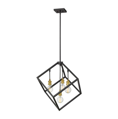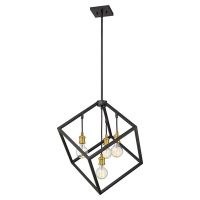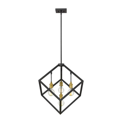 You'll love the clean modern edge that this two-tone four-light pendant adds to your home. It features a bronze and olde brass finish with the lights inside a single cube-shaped shade for a dynamic look and feel. It's a vibrant light designed to transform any dining room, hallway, bedroom, or kitchen.
