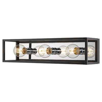 Give your home lighting a bold, edgy upgrade with this two-tone three-light vanity. It features a classic matte black and brushed nickel finish with an austere rectangular design. You'll love how it energizes a bathroom or powder room with its panache and glam.