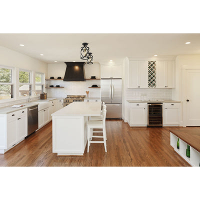 The graceful lines of the Malcalester collection create a truly a stunning collection. Finishes of matte black with brushed nickel accents and white etched glass, or matte black with olde brass accents and white etched glass complete the design.