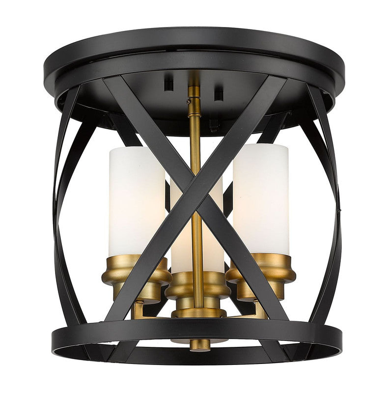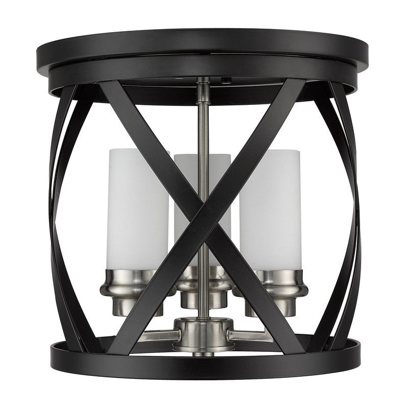 Add charm and style to your home lighting with this two-tone three-light flush mount light. It features a combination matte black and brushed nickel finish in a crisp round design highlighted by an X-cross pattern. Any hallway, bedroom, dining room, or living room will enjoy an immediate ambient upgrade with the addition of this.