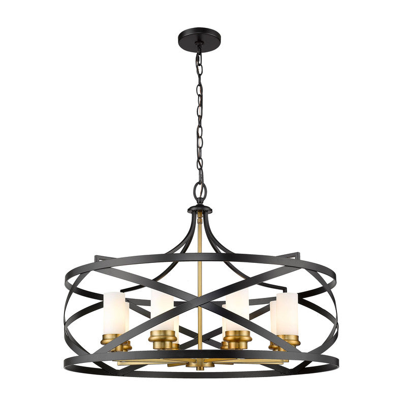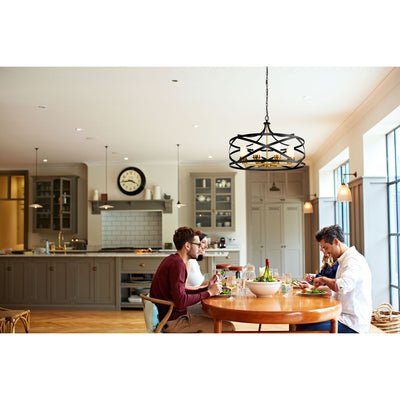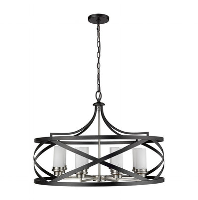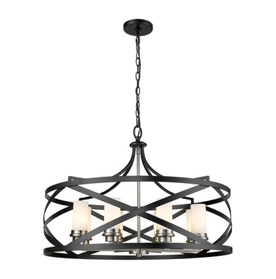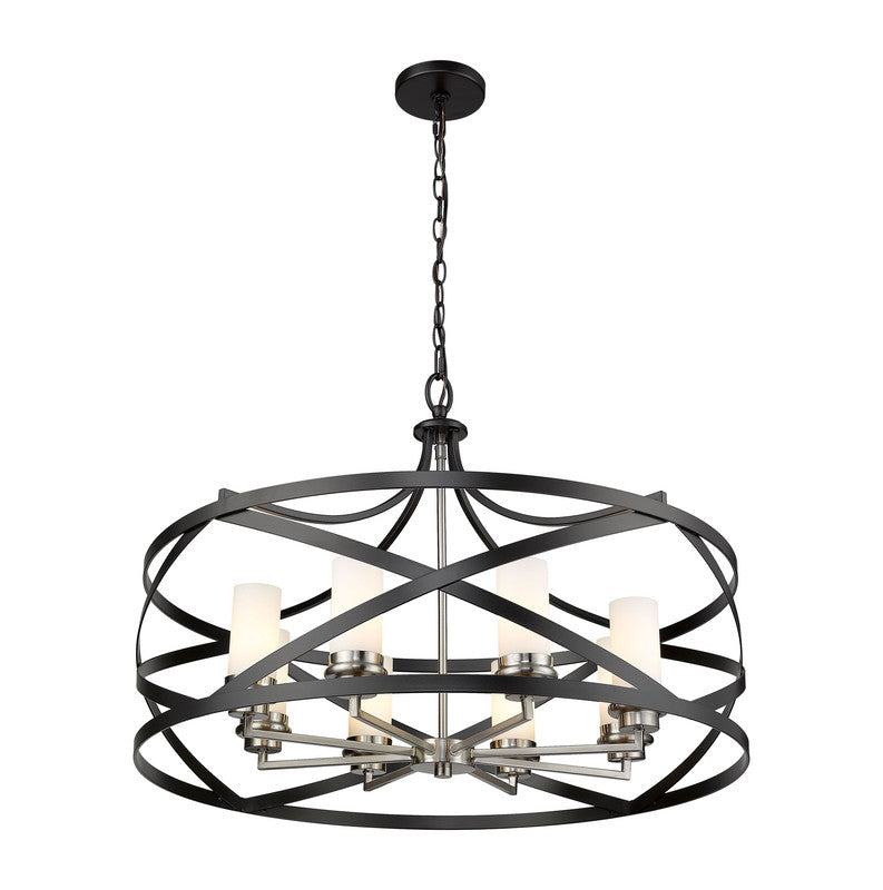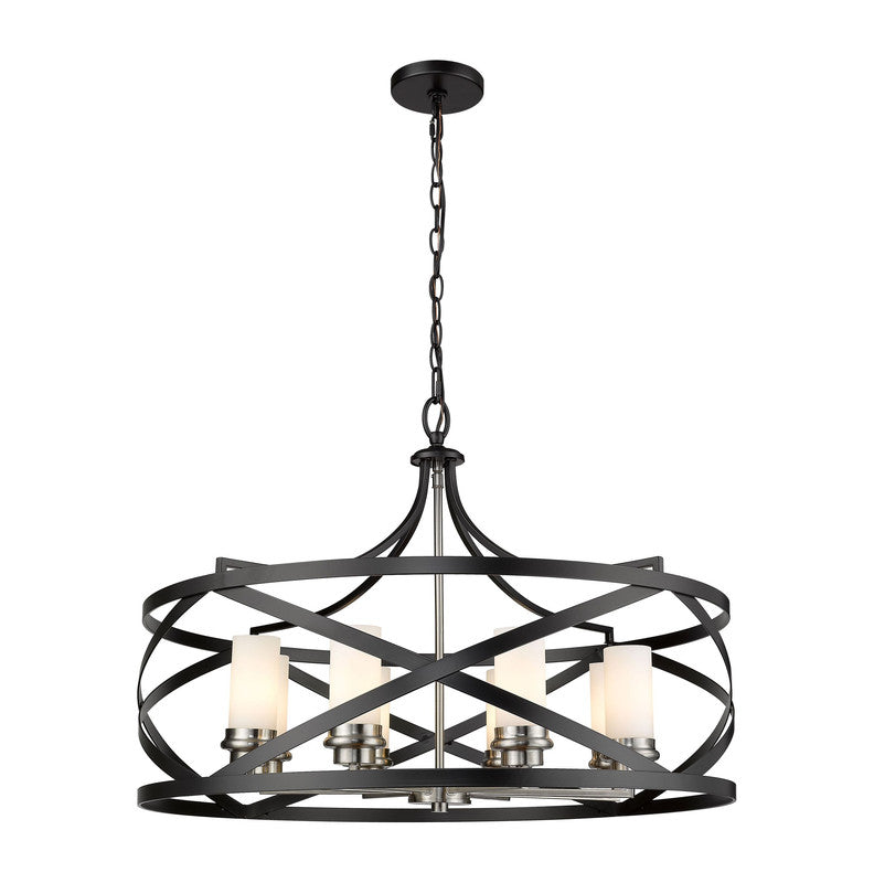 Make a statement with your home lighting when you add this spectacular two-tone eight-light pendant. It's crafted with a matte black and brushed nickel finish with the lights housed inside a round design highlighted by an X-cross pattern. This light will transform the look and feel of any foyer, grand dining room, living room, or kitchen.
