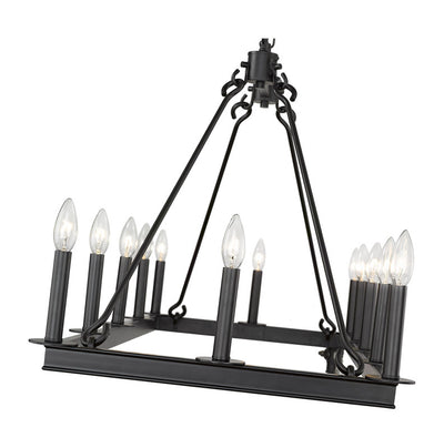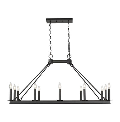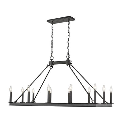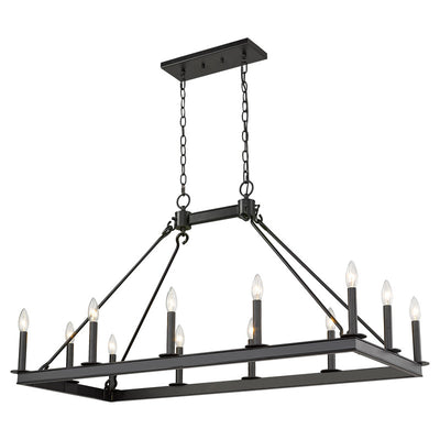 This majestic twelve-light island/billiard light makes an elegant addition to your home lighting collection. It's crafted in a classic matte black finish and features the candle-inspired lights in a vibrant rectangular design. It's the ideal light for the dining room, foyer, kitchen, or entertainment room.