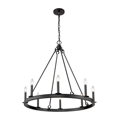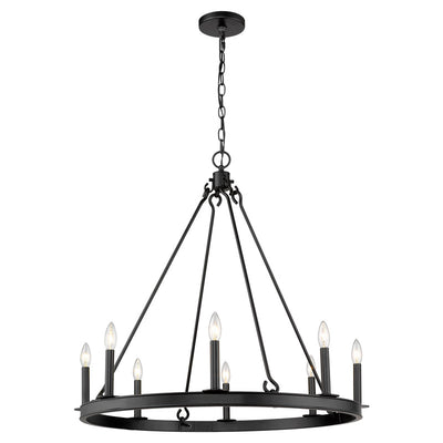 Light up your home both stylishly and literally with the addition of this lovely eight-light chandelier. It's crafted in a handsome matte black finish and features the candle-inspired lights in a charming round design. The chandelier is perfectly suited for the breakfast nook, foyer, kitchen, or entertainment room.