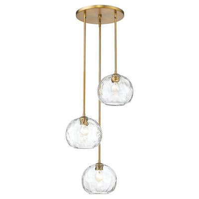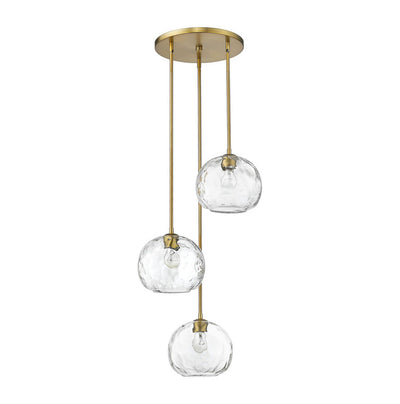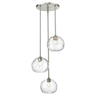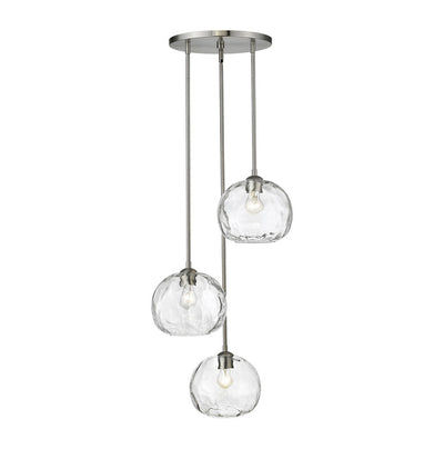 Define your modern space with the eye-catching, streamlined presence of this contemporary three-light pendant. Grooved, rounded shades are made from clear, water-textured glass, suspended from a sleek steel frame with a brushed nickel finish. Your contemporary dining room or family space gets an instant boost with this sophisticated fixture.