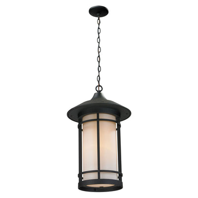 Today�s contemporary homes as well as homes of the craftsmen style are particularly well suited with the classic styling of this medium outdoor chain light. This fixture has black finish with matte opal glass.