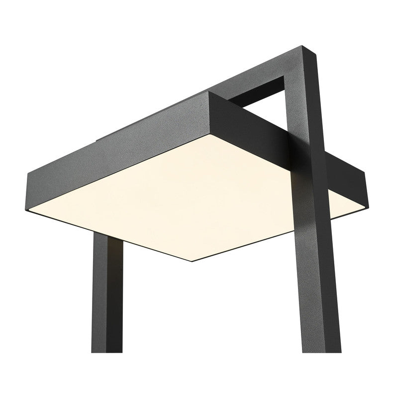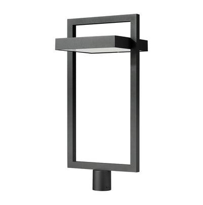 A cutting-edge solution for illuminating your contemporary patio, deck or garden area, this one-light outdoor post mount fixture delivers chic minimalism with its angular bold black finish aluminum frame. A sand blast finish white glass shade uses LED-integrated technology to provide a strong, energy-efficient glow to light up evenings outdoors.