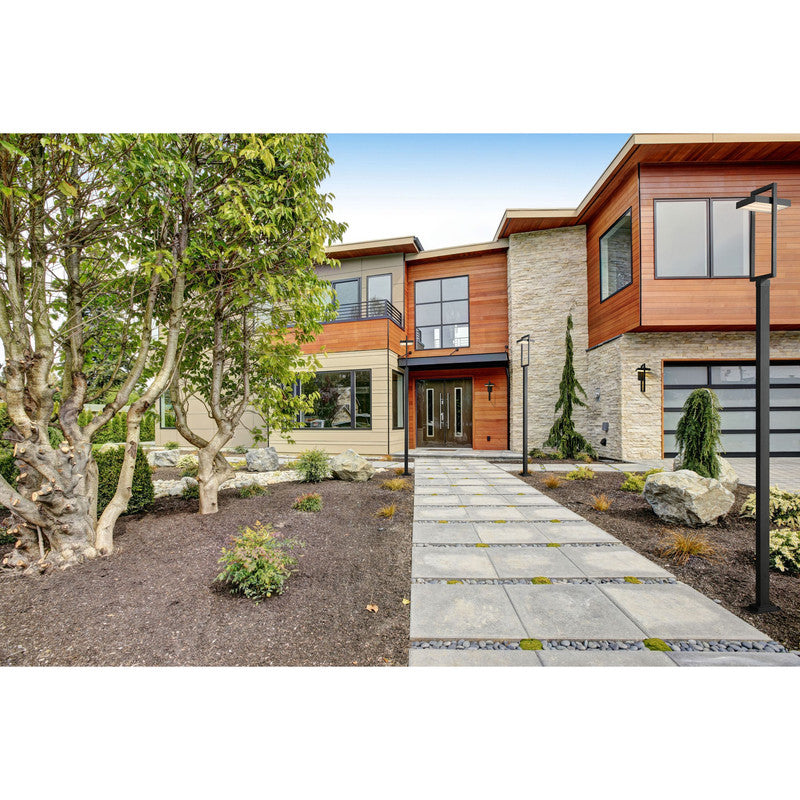 A cutting-edge solution for illuminating your contemporary patio, deck or garden area, this one-light outdoor post mounted fixture delivers chic minimalism with its angular bold black finish aluminum frame and four-sided post. A sand blast finish white glass shade uses LED-integrated technology to provide a strong, energy-efficient glow to light up evenings outdoors.