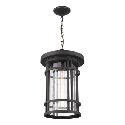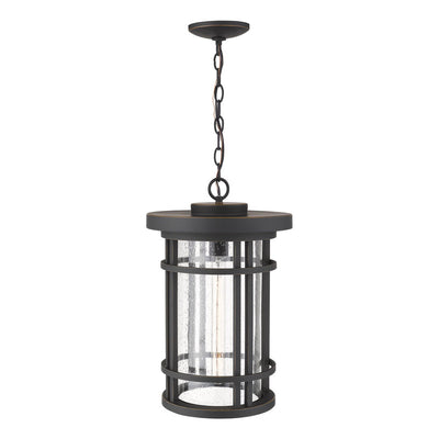 With traditional design but modern features, the Jordan collection of outdoor fixtures is a transitional d�cor masterpiece. Clear seedy glass is paired wonderfully with your choice of Black or Rubbed Bronze finishes. Several sizes and hanging styles available.