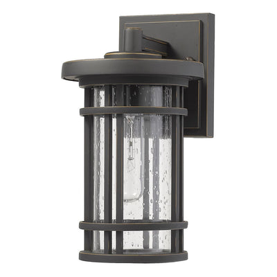 With traditional design but modern features, the Jordan collection of outdoor fixtures is a transitional d�cor masterpiece. Clear seedy glass is paired wonderfully with your choice of Black or Rubbed Bronze finishes. Several sizes and hanging styles available.