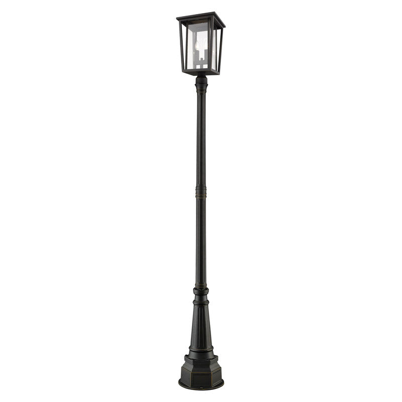 Striking and chic, the Seoul collection of outdoor fixtures updates the classic lantern look and gives it modern makeover. Special cut clear glass panels create a unique geometric look. Finished in either Black or Rubbed Bronze, the Seoul family of fixtures come in various sizes and hanging styles.
