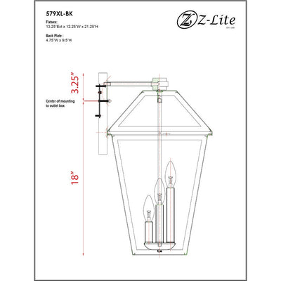 Z-Lite 579XL-BK Talbot 3 Light Outdoor Wall Sconce