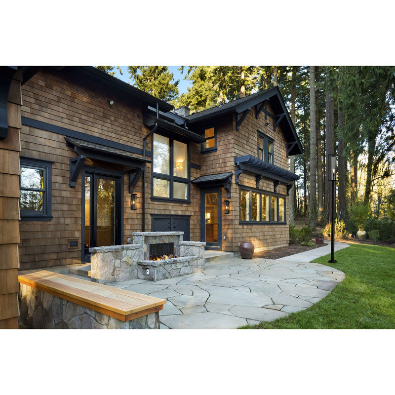 Cast a glow along a pathway with this modern outdoor post mounted fixture from the Dunbroch collection. Featuring a sleek, tall post and rectangular lantern with an airy, open silhouette, this outdoor light fixture can illuminate surrounding yards and landscapes. With a dark black aluminum frame and a single light set inside a clear glass cylindrical globe, this contemporary post mounted fixture lends a stylish look to any outdoor veranda or patio entertainment areas.