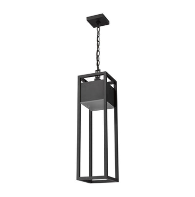 From the Barwick collection comes this contemporary outdoor ceiling fixture, perfect for mounting above a porch entryway. With an open rectangular aluminum cage in a deep black finish, this ceiling fixture hangs by a chain mount and can complement existing building facade colors. With an elegant touch, this outdoor ceiling fixture also comes with an energy-efficient LED-integrated lamp tucked beneath an etched glass plate.