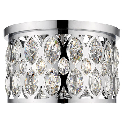 Faceted K9 crystals glitter and gleam from within this stellar four-light flushmount ceiling light. In chrome that only adds to its sparkling appeal, the light is a beauty over an entry or in an elegant living area.