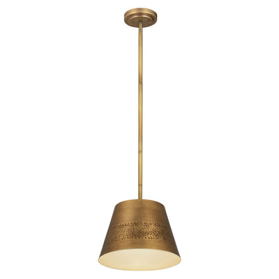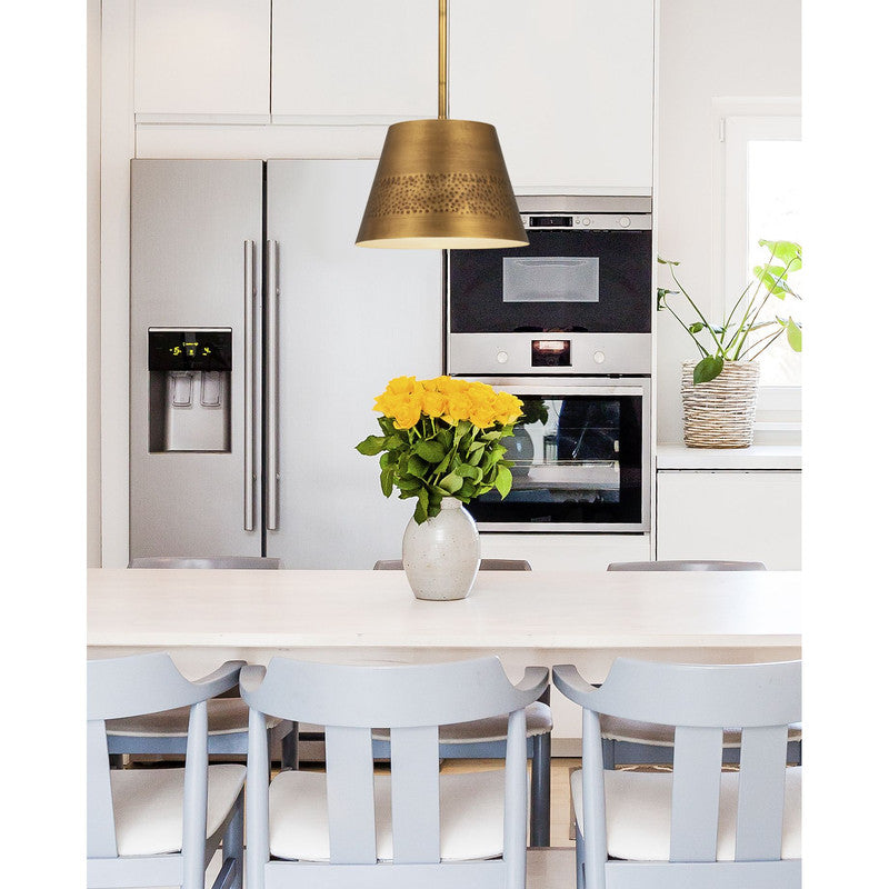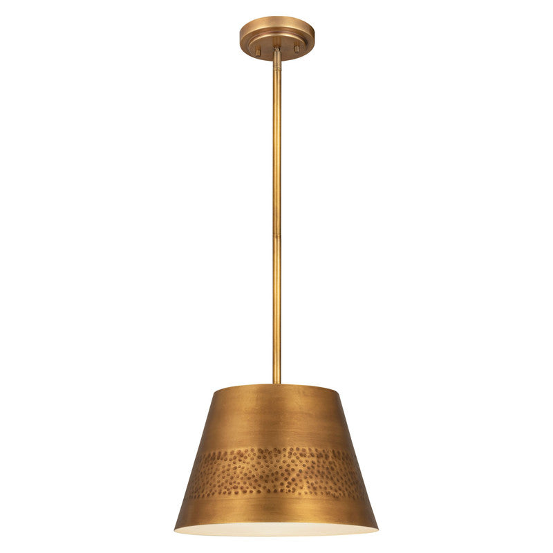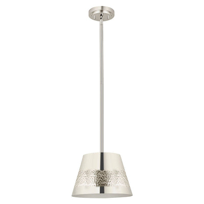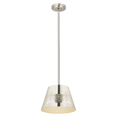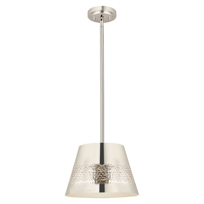 Illuminate your home with the warm glow of the Maddox pendant. Featuring a conical shade with a hammered belt detail, this pendant lends an elegant addition to any decor. Available in Matte Black, Rubbed Brass, and Polished Nickel finishes, the Maddox offers even more flexibility with an adjustable hanging height and the ability to be mounted on a sloped ceiling.