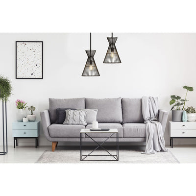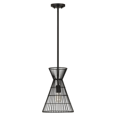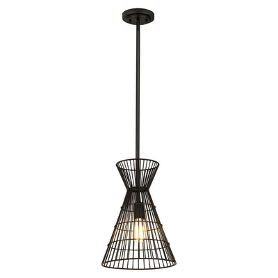 Indulge in a love of industrial aesthetics with a light fixture styled to deliver casual, easygoing personality in a targeted space. This mini-pendant from the Alito collection offers a bold matte black finish iron frame creating a geometric silhouette and a cage-style wire design. A matching down rod and canopy offer palette consistency and an energy-inducing look to punctuate any space.