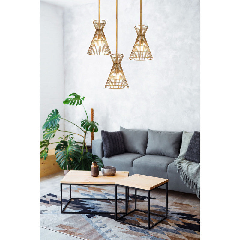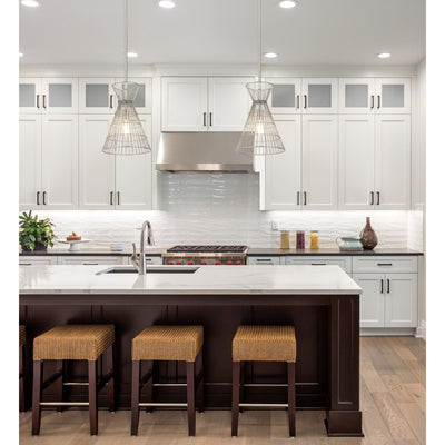 Angular geometric shapes created by the stacked conical steel cages create a visual statement for any room. Available in a choice of finishes such as Matte Black, Polished Nickel, and Rubbed Brass, this collection is both contemporary and warm. Complete this look with vintage-inspired light bulbs to capture the full effect.