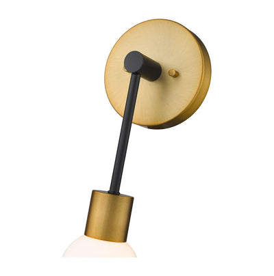 This elegant wall sconce from the Neutra collection lends a charming design with an Art Deco flair. Perfect for a contemporary home, this drop pendant wall sconce features a steel structure and a two-tone finish of matte black and warm, lustrous foundry brass. In addition, its opal globe diffuses a soft, soothing glow to create a relaxing environment.