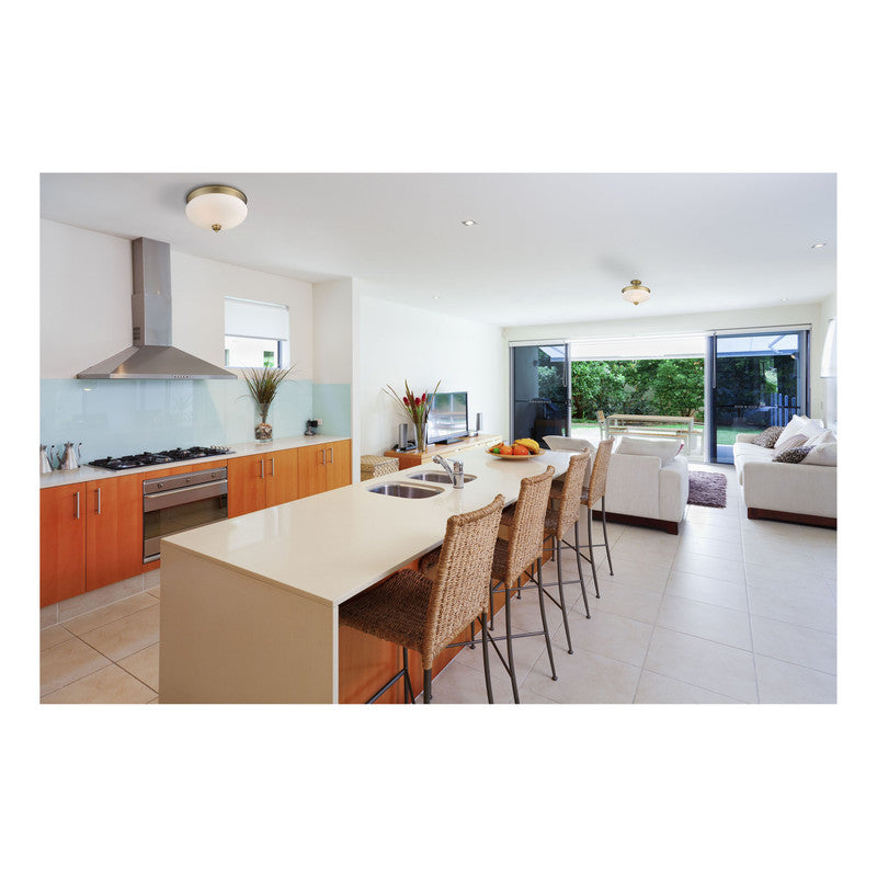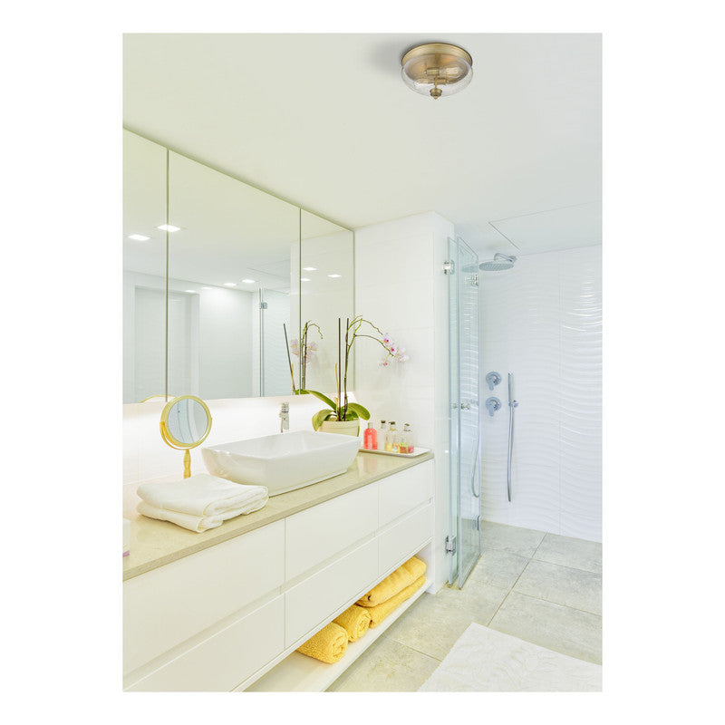 Oblate glass shades influenced by the school house globes of old, the Amon family puts a contemporary spin on a traditional classic. Matte Opal glass paired with sleek modern finishes create a bold yet classic look. Finishes include Satin Gold, Brushed Nickel, Chrome and Olde Bronze.
