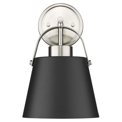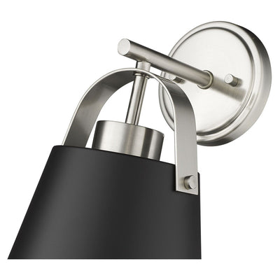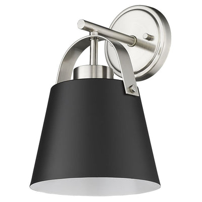 Choose sophistication to bring uplifting elegance in a casual space, adding this single-light wall sconce from the Z-Studio collection. Its tasteful farmhouse industrial design features a conical matte black finish steel shade with brushed nickel steel accents. Fresh styling contributes to a striking look as it delivers ambient lighting to hallways, bath spaces, and main living areas.