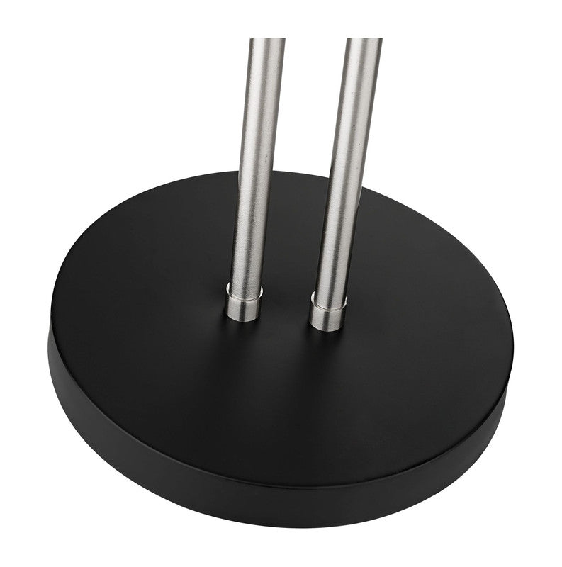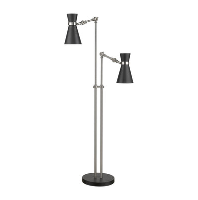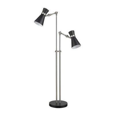 A character-rich studio theme shapes industrial influence that adds casual elegance to this matte black finish steel two-light floor lamp. This lamp features a touch controlled shade with thrree levels; high, low and off. Dress up a living room or office space with this tasteful fixture trimmed with brushed nickel finish steel. This sleek two-light fixture reflects the heart of romantic industrial charm.