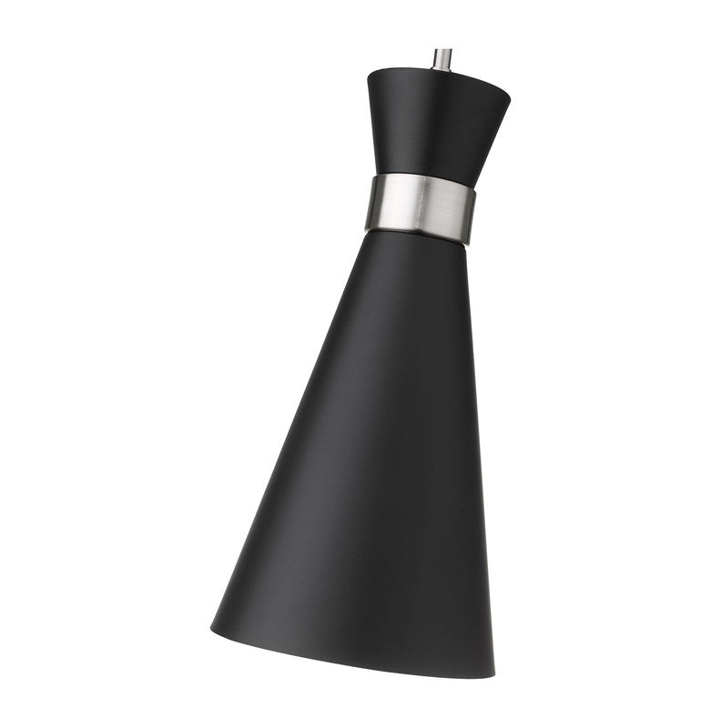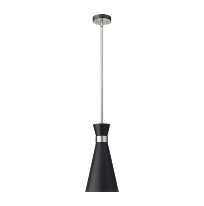 A decorative, slender silhouette shapes industrial influence that adds casual elegance to this matte black finish metal pendant light. Dress up a main living space or entryway with this tasteful fixture trimmed with brushed nickel finish steel. This sleek pendant captures the heart of romantic industrial charm.