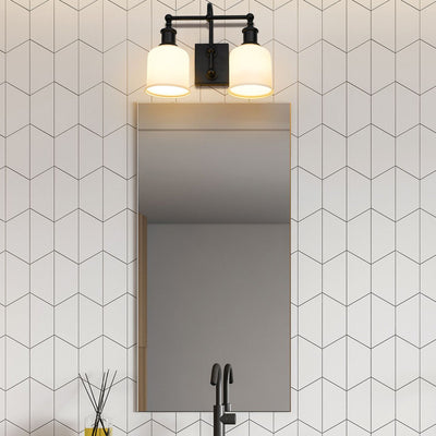 Choose a vintage industrial look with nautical influence, adding this two-light wall sconce from the Bryant collection. Embrace a bold matte black finish steel frame and mount, blending beautifully with opal glass shades. A curved arm, ornate holders, and lipped shades generate extra charm that stylize a custom bath space, dining area, or main living room.