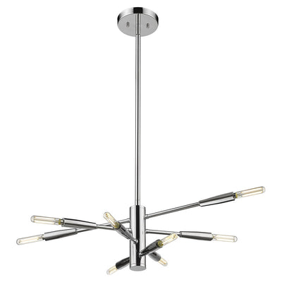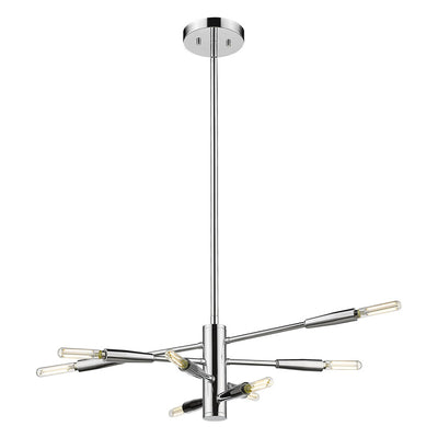 The modernistic aesthetic of space sneaks in to add a dynamic vibe to this chic eight-light chandelier from the Ascension collection. Make any space a central focus with a fixture crafted of brilliant chrome finish steel and dressed up with slender baton-style arms that may be rotated to achieve a customized look. This chandelier is a superb addition to both casual and semi-formal contemporary spaces.