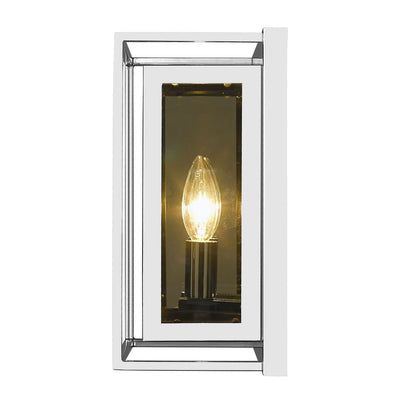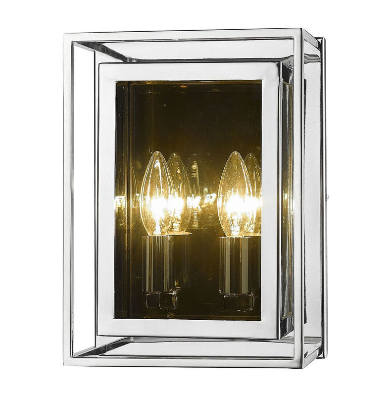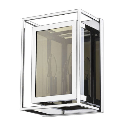 Choose this decadent contemporary two-light wall sconce for its chic blend of steel and mirror, and a geometric linear silhouette that updates modern bathrooms and hallways. A double frame made from chrome finish steel joins both clear and smoke glass to deliver a soothing, atmospheric aesthetic with plenty of inspiration. Candelabra bulb mounts create an opportunity to change up the motif and fit into transitional spaces.