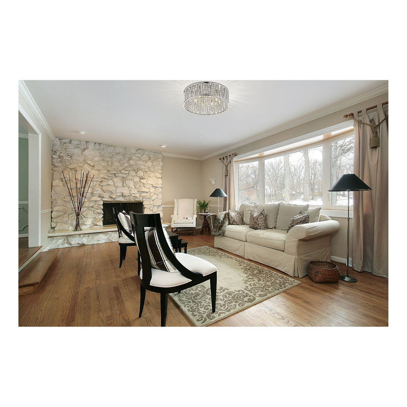 Spectacular lines of glittering crystals that surrounds the light source will add a sparkle to any space. The polished Chrome fixture makes a perfect combination with the quality polished Crystals.