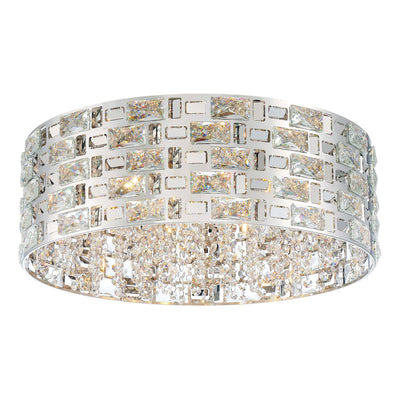 Transform a chic bathroom with the elegant crystal details from this chrome ceiling light. Featuring a rounded silhouette, the radiant chrome frame is adorned with beads and brilliant accents.