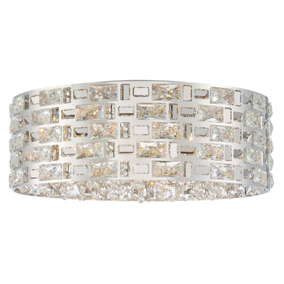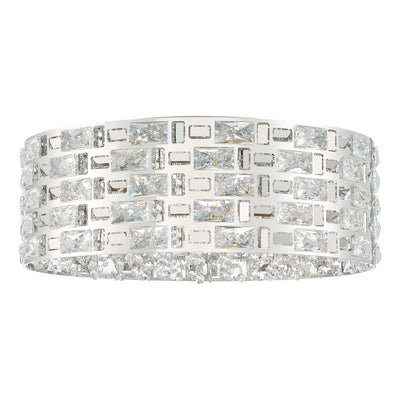 The contemporary styled laser cut design of the Aludra collection define its signature look. Through the varied openings, beautiful rectangle crystals are revealed and surrounded in a highly polished Chrome finish. The Aludra collection is available in different fixture types and sizes.