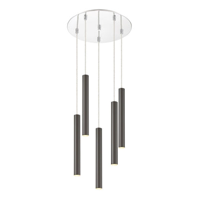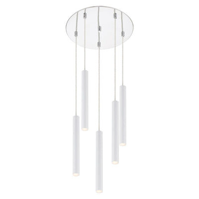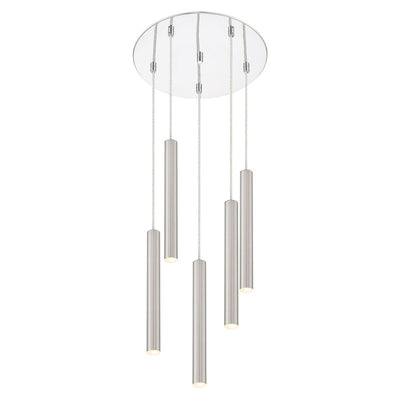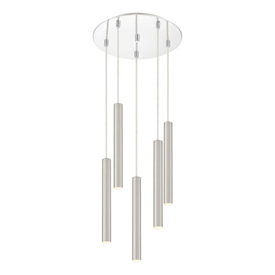 Perfect for a sleek bathroom, this five-light pendant light features a windchime-inspired silhouette. Clean and elongated, the smooth lines of the silhouette boast a radiant brushed nickel finish.