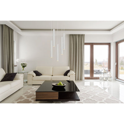 Standing like forests of trees uniformly reaching skyward and doing the work of mother nature these energy efficient fixtures lighting our homes in the greenest of ways. The multilight chandelier likens to branches hanging delicately in the wind. The Forest collection conjures up images of uncomplicated beauty. Each appendage that flows from these pedants include the latest in LED energy saving technology. Many single and multiple hanging combinations avaiable. Finishes for the single pendants include Chrome, White, Pearl Black, Matte Black and Brushed Nickel, multi point ceiling canopies available only in Chrome, six light fixture available only in Chrome.