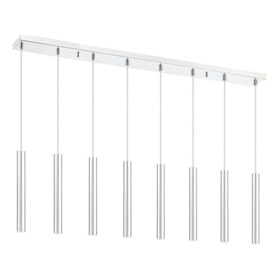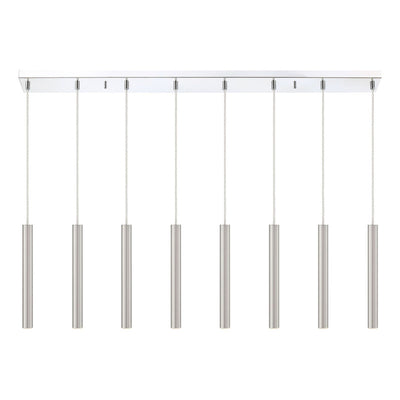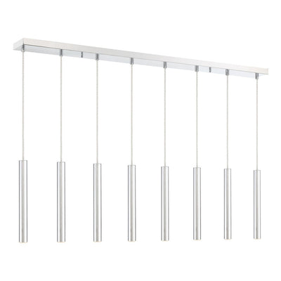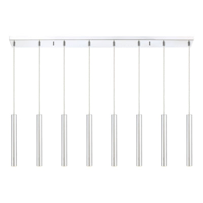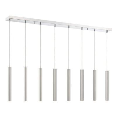 The stunning silhouette of this windchime-inspired eight-light island pendant offers an instant transformation. The bright brushed nickel finish casts a soft glow through the clean and open design.