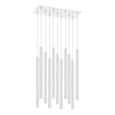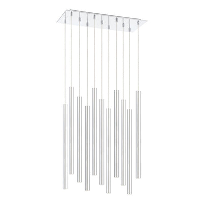 Radiant and sophisticated, this fourteen-light pendant light is sleek and clean. Shiny brushed nickel streamlines the windchime-inspired silhouette.