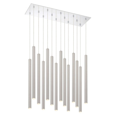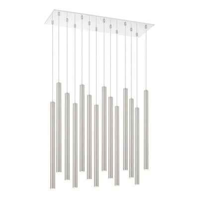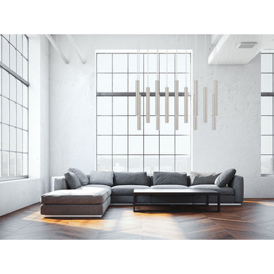 This fourteen-light pendant light features a radiant finish over a sleek and clean frame. Celebrate modern brilliance with shiny brushed nickel.