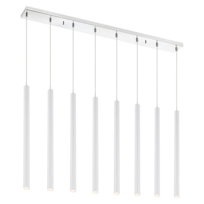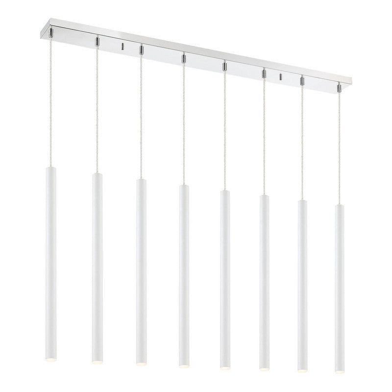 Standing like forests of trees uniformly reaching skyward and doing the work of mother nature these energy efficient fixtures lighting our homes in the greenest of ways. The multilight chandelier likens to branches hanging delicately in the wind. The Forest collection conjures up images of uncomplicated beauty. Each appendage that flows from these pedants include the latest in LED energy saving technology. Many single and multiple hanging combinations avaiable. Finishes for the single pendants include Chrome, White, Pearl Black, Matte Black and Brushed Nickel, multi point ceiling canopies available only in Chrome, six light fixture available only in Chrome.